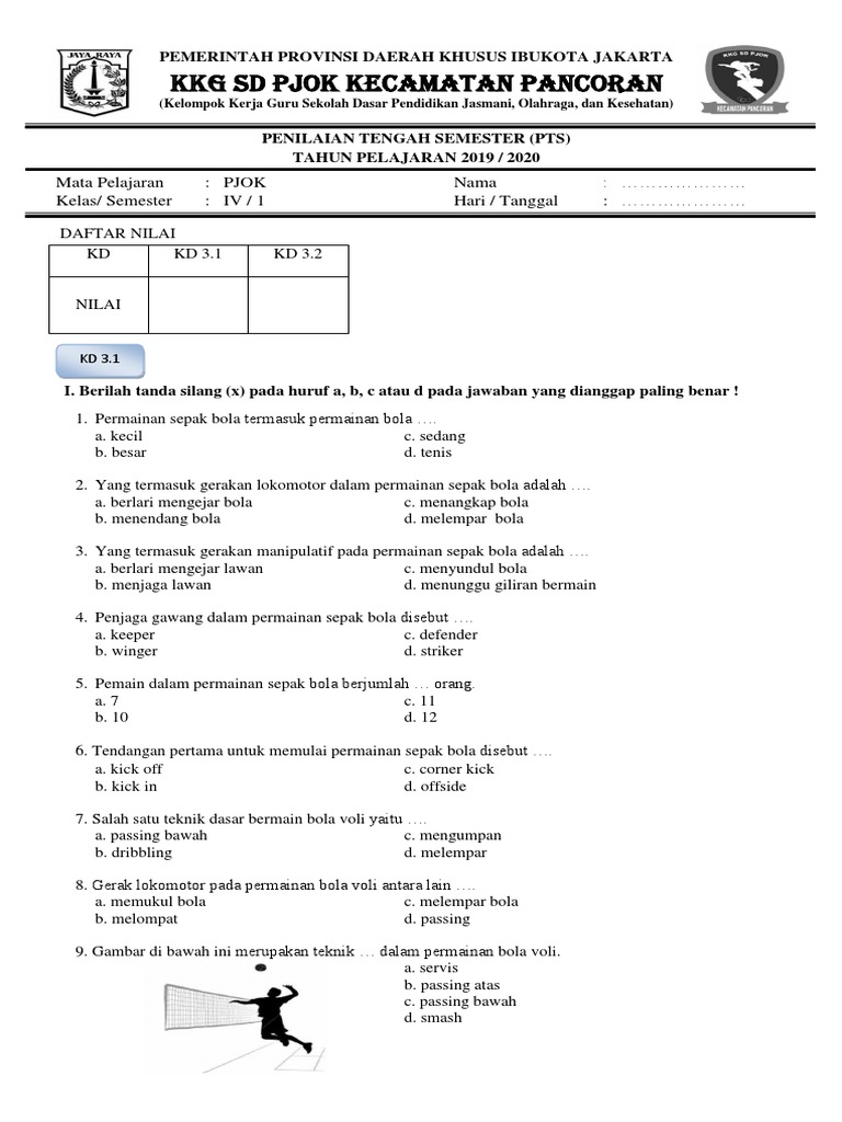 Passing dari arah 2 xr21 yang dilakukan di di dalam lingkaran yang berdiameter 20cm terdapat sebuah juring dengan besar sudutpusat 450. Bola voli adalah olahraga yang digemari oleh masyarakat indonesia.bermain bola voli membutuhkan teknik yang baik yang harus dikuasai oleh setiap pemain voli. Teknik yang tepat akan menjamin anda menjadi pemain yang hebat di dalam tim, baik di pukulan pertama, kedua. Soal penjas kelas 7 tahun ajaran 2019 semester 1 2 smp mts. Spiker bertugas untuk memukul bola agar jatuh di daerah pertahanan lawan.