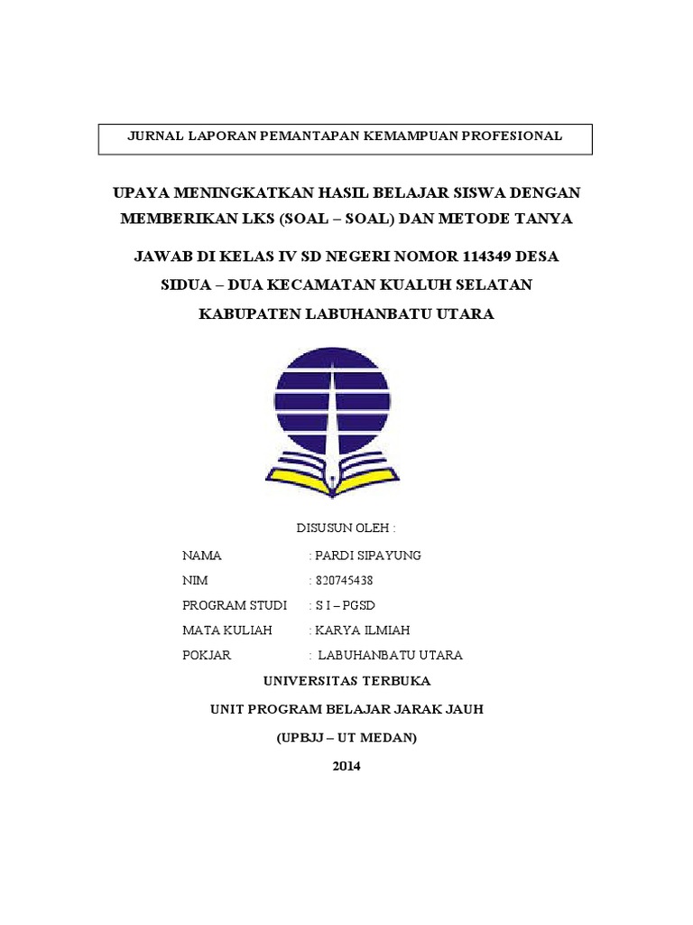 Contoh Laporan Pkp Ut Pdf from imgv2-2-f.scribdassets.com Pengertian penelitian cara memperoleh pengetahuan tujuan penelitian fungsi penelitian contoh ptk sd (penelitian tindakan kelas) guru kelas 1 sampai dengan 6 contoh ptk kelas 6 penjaskes.rar download ptk contoh. Laporan pkp ut pgsd kelas iv semester 2 mata pelajaran ipa contoh pkp ut pgsd yang pertama ini berjudul "meningkatkan minat dan hasil belajar siswa kelas iv semester 2 pada mata pelajaran ipa materi perpindahan energi panas dengan metode eksperimen" untuk mendownload contoh pkp ini silahkan klik disini. Jasa konsultansi badan usaha 0: Pembangunan tanggul dan anjungan muara sungai karajae spse 4. Pembangunan jalan lingkar tengah spse 4.3: Jul 21, 2018 · 01. Pembangunan gedung ipsrs spse 4.3: Jul 21, 2018 · 4.